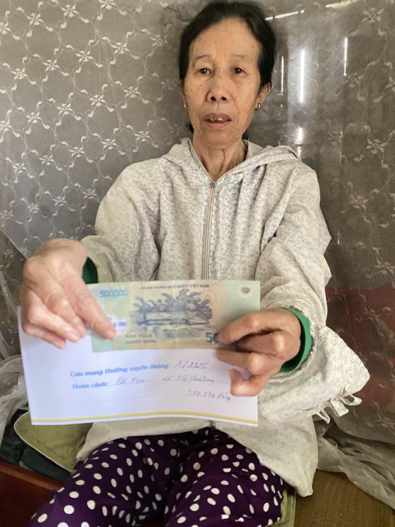 Sau 72 giờ tiếp theo hoàn cảnh của dì Hoa vẫn chưa nhận được sự hỗ trợ thì chúng ta xuất quỹ NTCM để trao CMTX, 500.000đ/ tháng trong 3 tháng từ tháng 11 đến tháng 01/2026, mong có thêm sự quan tâm hỗ trợ của cả nhà