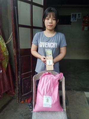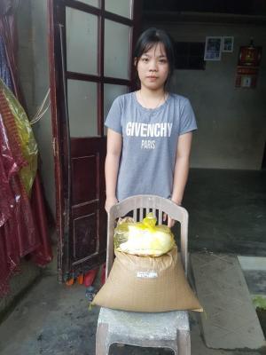 Hôm nay em đã đi trao phần quà CMTX tháng 10/2020 đến hộ em Trà My rồi ạ.