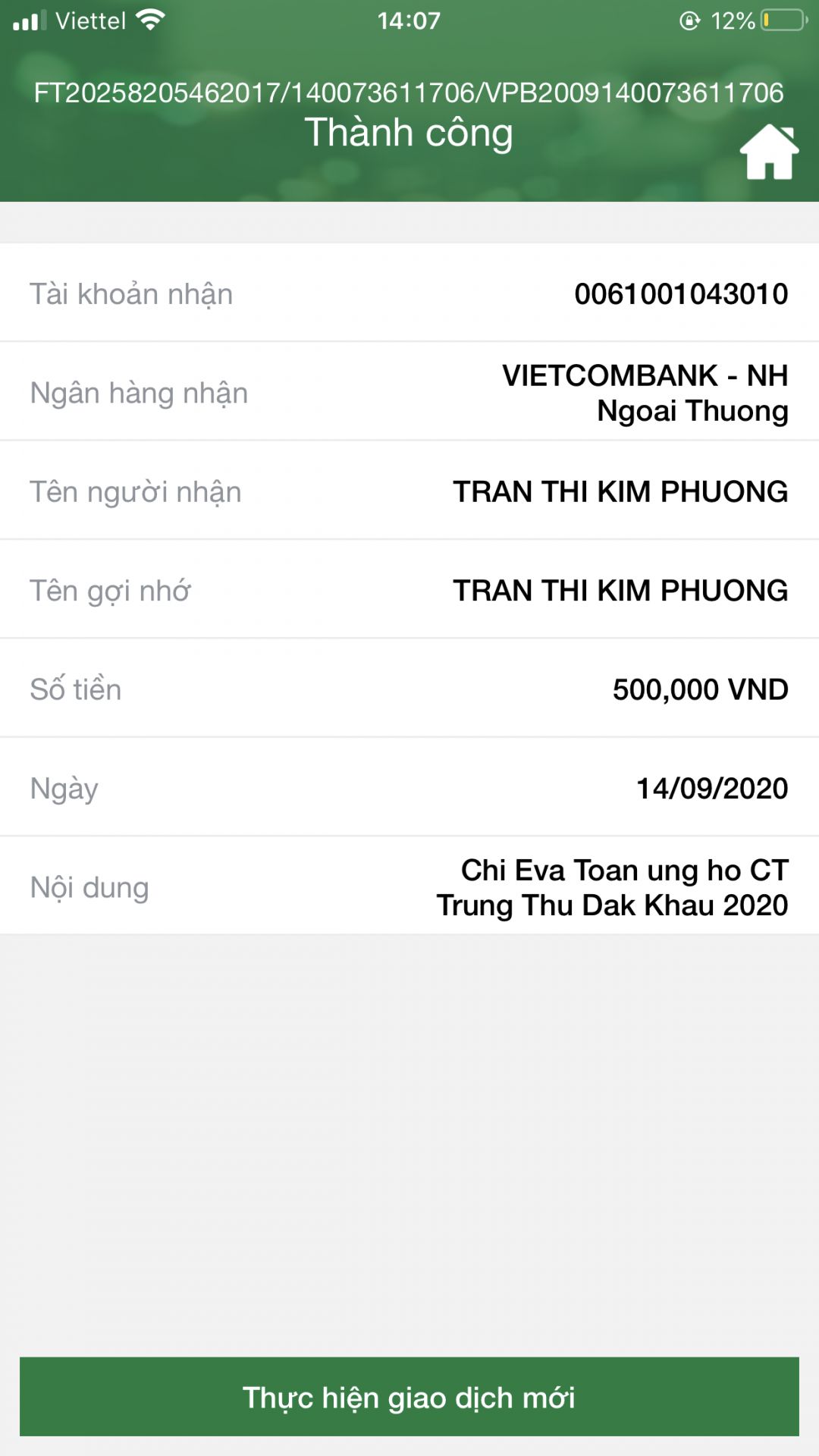 - MTQ có số GD 483383.080920.163410 ủng hộ 500,000 VND
