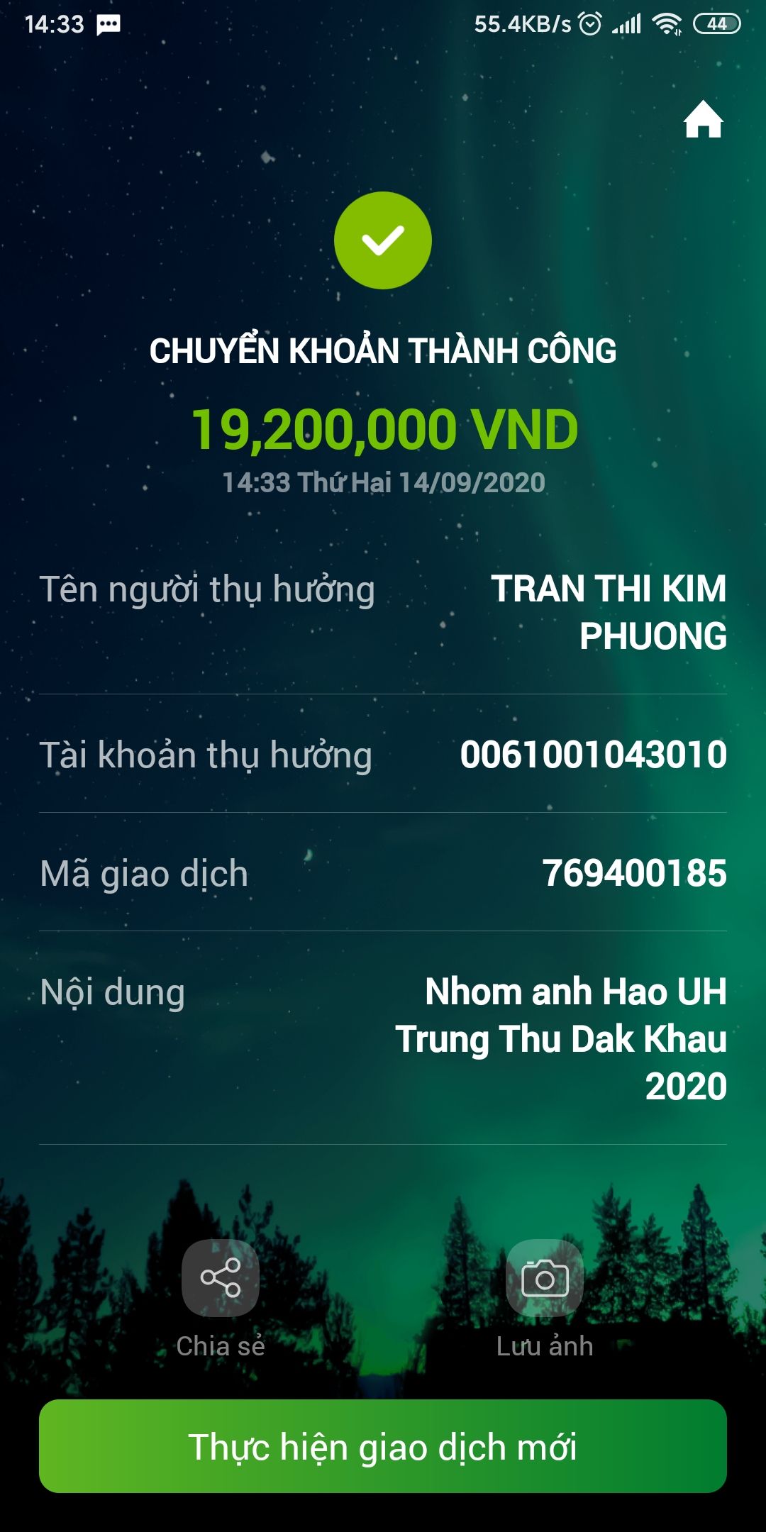 Vk mình làm tt dạy trẻ Mảnh Ghép Nhỏ nên muốn ủng hộ hộ các bé vui trung thu, đã chuyển 1 triệu vào tk thủ quỹ