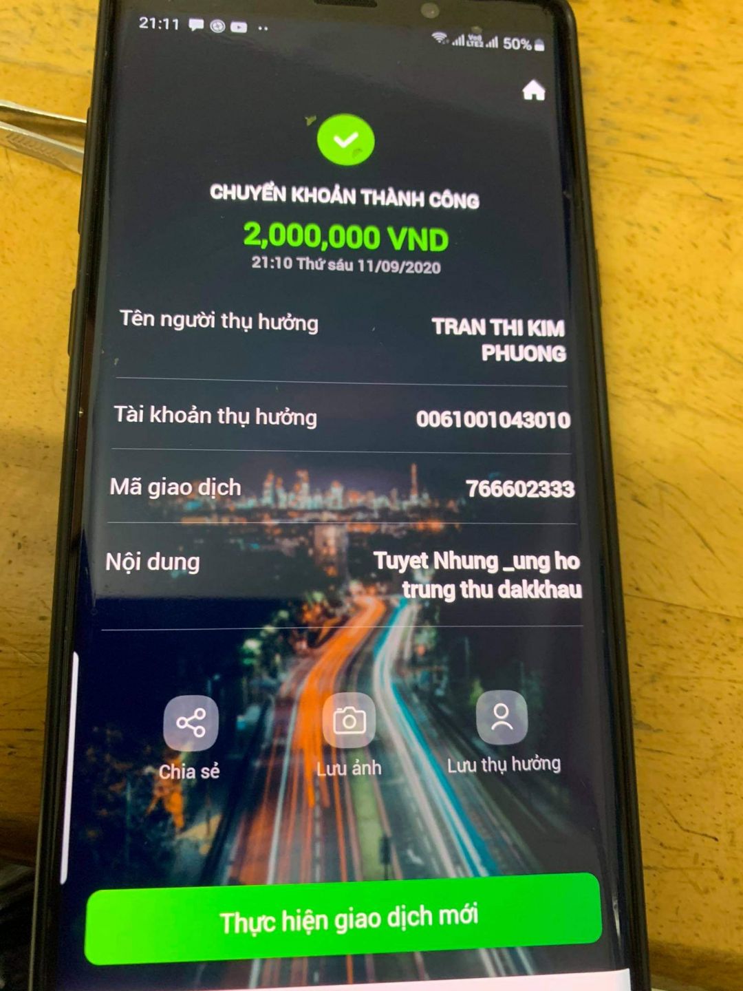 Bạn Cam ủng hộ 500.000đ, đã chuyển khoản.
