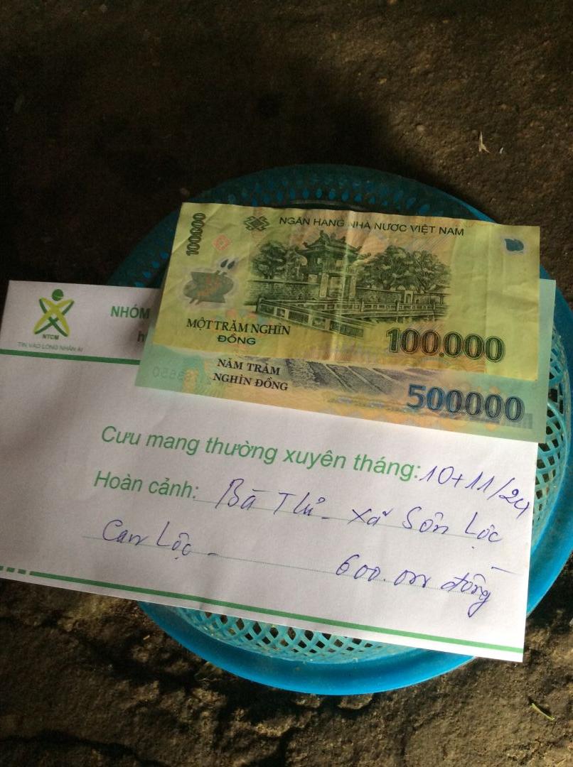 Nhóm Hà Tĩnh cập nhật trao CMTX tháng 9/2024 đến bà Thỉ xã Sơn Lộc. Cảm ơn Maisa Phan đã đồng hành cùng hoàn cảnh.