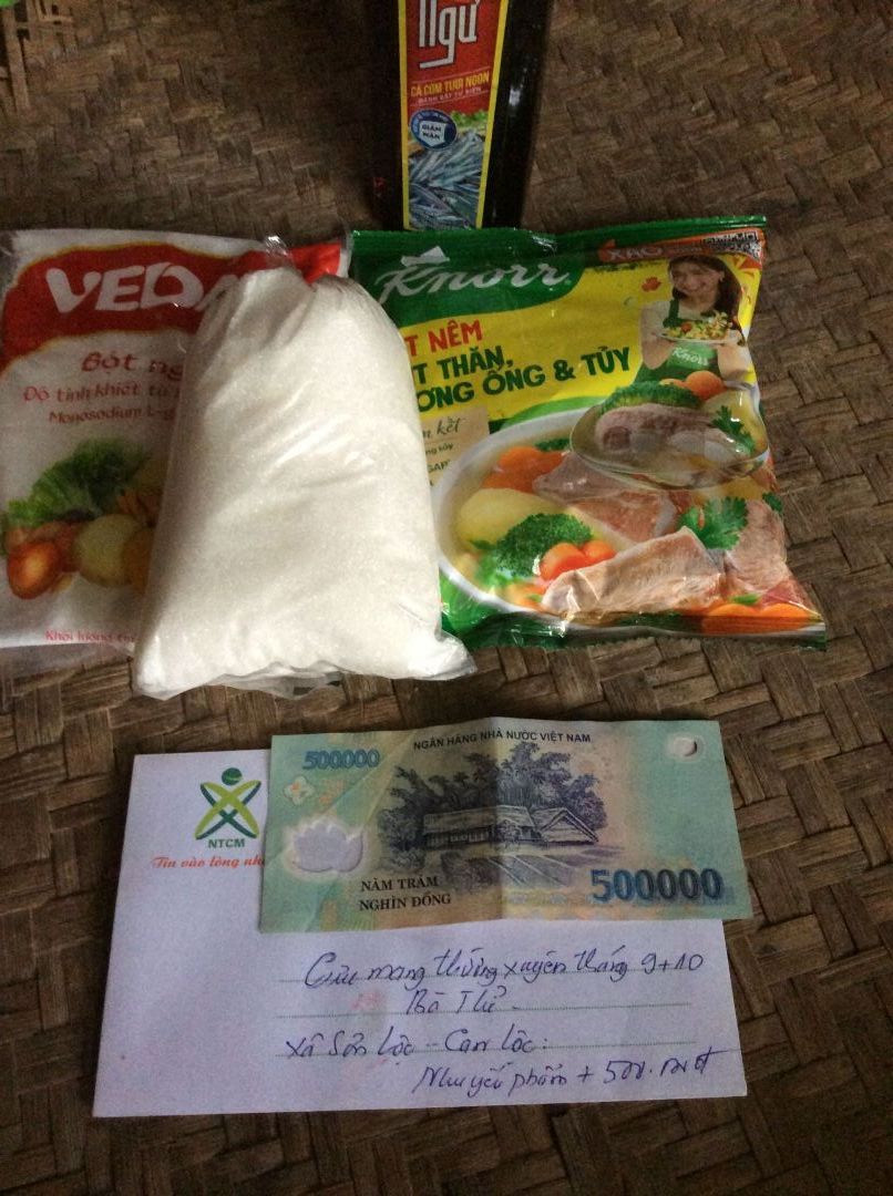 Nhóm Hà Tĩnh cập nhật hình ảnh trao CMTX các tháng 9,10/2023 đến bà Thỉ. Bao gồm tiền mặt và nhu yếu phẩm trị giá 115.000₫