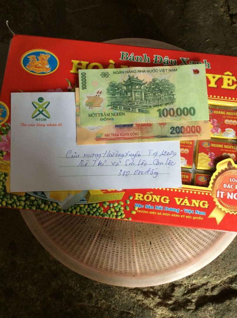 Ngày rằm tháng Chạp, tranh thủ thời gian những ngày gần Tết, vợ chồng LNLB đã đến thăm và trao CMTX tháng 1;2/2024 đến hoàn cảnh bà Thỉ xã Sơn Lộc, Can Lộc số tiền 450.000₫ cùng nhu yếu phẩm trị giá 150.000₫  trích từ tiền CMTX của 2 tháng( theo nguyện vọng của bà) bao gồm: