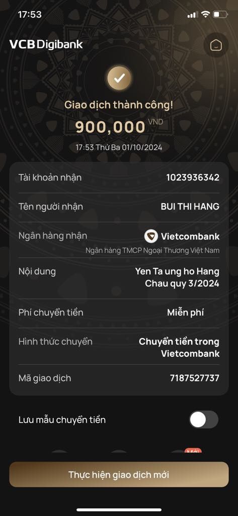 Em hỗ trợ cháu Hằng Châu 300k/tháng từ tháng 8-12/2024. Em đã ck tiền tháng 8+9, nhờ Quỹ chuyển giup cho các cháu. Thanks.