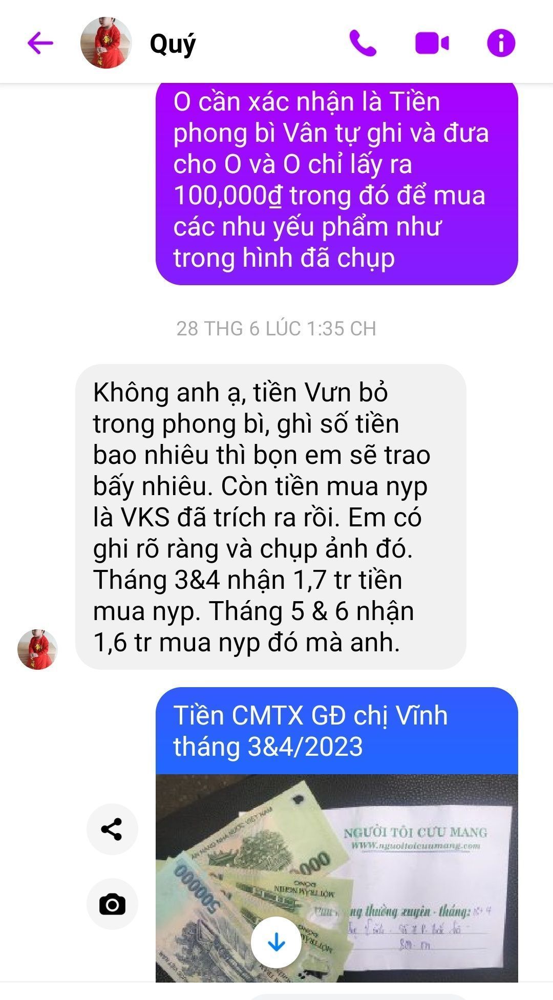 @Vânkiêusa : Em chuyển nốt 100,000₫ tiền CMTX các cháu mà em đã trao thiếu của đợt trao tháng 3 &4/2923 dùm nhé.