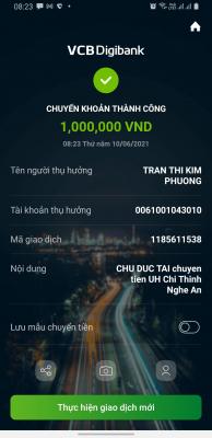Gia đình Lộc và Oanh xin đăng ký CMKTX số tiền 1,000,000VND còn lại.  Cho mình hỏi mình cần ck vào tk nào vậy ạ? Cám ơn mọi người.
