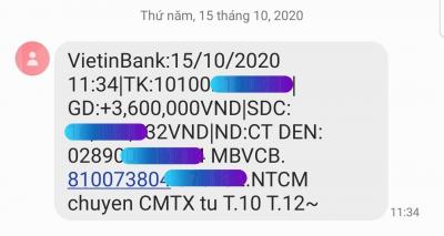 Em cập nhật thông tin nhận tiền CMTX 3 tháng từ tháng 10 đến tháng 12/2020 ( 300.000đ/ tháng)