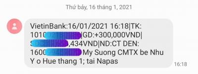 Em đã chuyển khoản tiền tháng này nhé chị @Tran Ha . Nhờ chị chuyển cho gia đình giúp em nha! Cảm ơn chị
