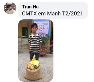 Vậy là đợt CMTX đến hoàn cảnh em Mạnh đã hết. Qua thăm hỏi, thì nhóm Huế xin được tiếp tục cưu mang hoàn cảnh bắt đầu từ T4/2021 với số tiền mua gạo và nhu yếu phẩm: 350.000đ/tháng
