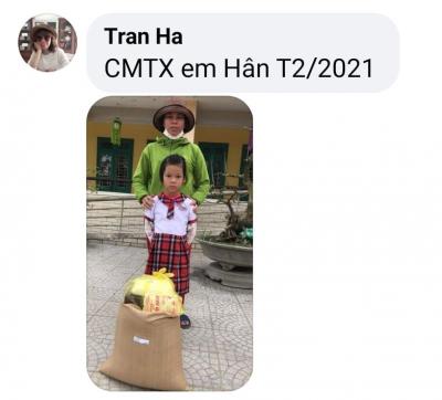 Nhóm Huế cập nhật hình ảnh trao CMTX Tháng 1, Tháng 2/2021 và trao quà Tết đến em Hân.
