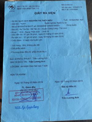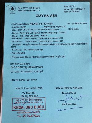 4. Mẹ: chị Kiều được chuẩn đoán là bị U tuyến yên và ảnh hưởng thị lực mắt phải nay đã mờ không thấy rõ, chỉ thấy khoảng cách gần 3-5m. Hằng ngày ở nhà trông coi bà nội, làm việc nhà, không có thu nhập. Hiện đã hơn nửa năm không có điều kiện lên sài gòn điều trị.
