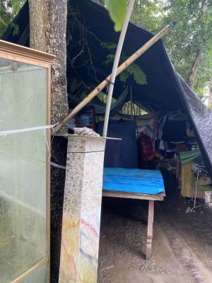 Hiện trên nền đất có 1 căn nhà tình nghĩa do địa phương xây tặng (32m2), cửa nẻo cũng không còn dùng được, hiện chỉ có Bình là ngủ phía sau của nhà tình Nghĩa, phía trước nhà thì có bàn thờ tổ tiên ; còn lại Nam và bà nội ngủ bên ngoài khu vực mái lá được hàng xóm hỗ trợ dựng khi nhà sập, 02 vợ chồng anh Sanyo thì ở trong túp lều được dựng tạm.