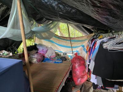 Hiện trên nền đất có 1 căn nhà tình nghĩa do địa phương xây tặng (32m2), cửa nẻo cũng không còn dùng được, hiện chỉ có Bình là ngủ phía sau của nhà tình Nghĩa, phía trước nhà thì có bàn thờ tổ tiên ; còn lại Nam và bà nội ngủ bên ngoài khu vực mái lá được hàng xóm hỗ trợ dựng khi nhà sập, 02 vợ chồng anh Sanyo thì ở trong túp lều được dựng tạm.
