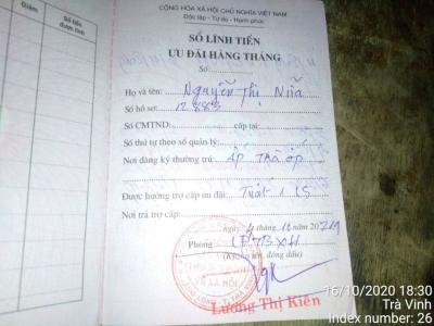 Chiều tối hôm nay mình ghé thăm gia đình anh Sanyo và xin được cập nhật thêm một số thông tin: Cô Nữa là mẹ của anh Sanyo trước đây có chồng và người chồng trước đây mất trong chiến tranh là liệt sỹ nay cô được hưởng tiền tuất ( tiền liệt sỹ ) mỗi tháng trên 1tr500 như hình ảnh ở dưới chi tiết còn người chồng mới mất là chồng thứ 2 của cô Nữa. Hiện cô ở với vợ chồng người con trai là anh Sanyo, con trai và con dâu thì bị bệnh như các thành viên đã cập nhật cùng với 2 người cháu nội. Theo như lời kể thì 1 số đất đã đưa cầm cố ( không có giấy tờ ) và giấy tờ nhà đất vay ngân hàng cầm cố đã lâu nay chỉ còn tờ khế ước cũ photo, mình có nói anh Sanyo kiếm bản gốc để đưa ra ngân hàng xem giấy tờ nhà đất ( nhờ bạn @Nhut Tram ở gần lần sau qua xem dùm ). Gia đình thuộc hộ nghèo, hộ cận nghèo, bạn @Nhut Tram theo dõi thêm trong quá trình học hình như có được miễn giảm học phí thì phải.