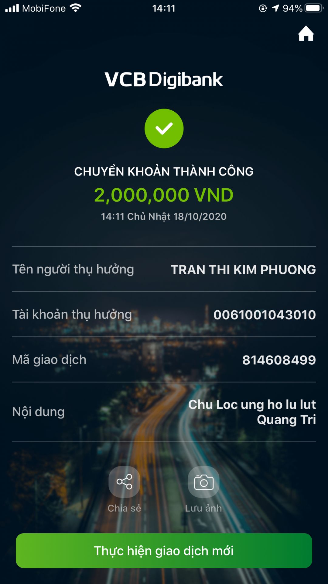 Cảm ơn cả nhà. Chiều nay nhận được sẽ chuyển ngay cho Quảng Trị.