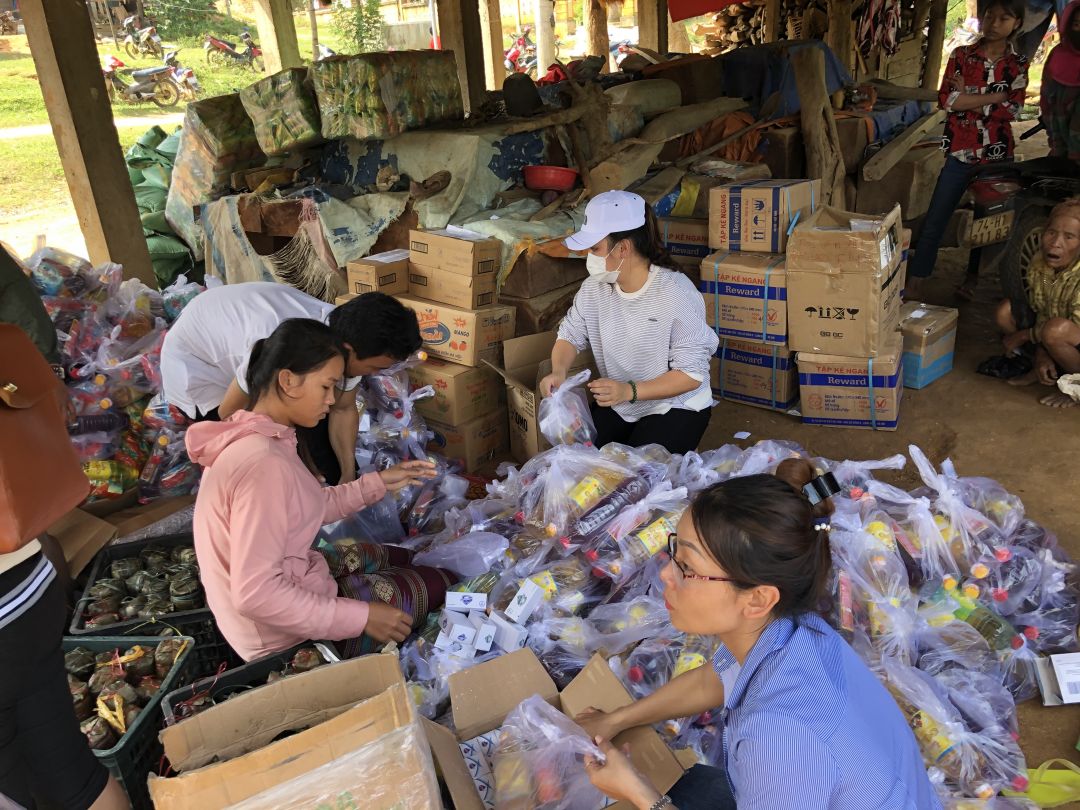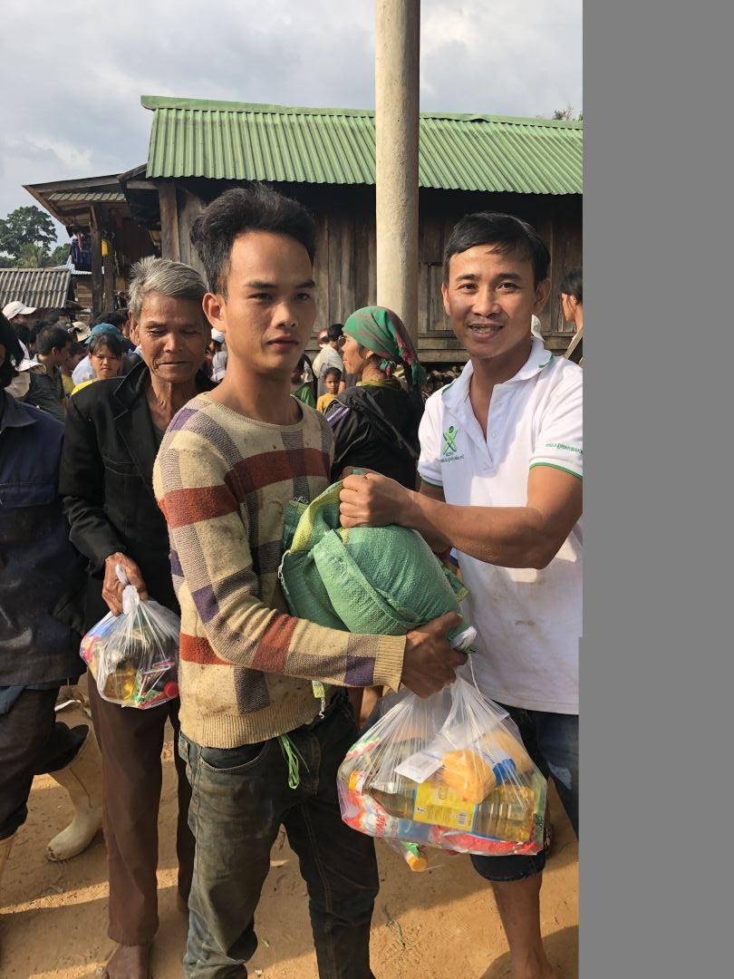Xe tải từ Hn do a Phương và bạn lái vào bị hư nên đoàn lên muộn hơn dự kiến (điểm phát quà cách TP 100km), nhưng rất nhanh mọi người tập trung chia đồ, huy động luôn đồng bào địa phương nhờ vào chia cùng, bà con tập trung lại từ rất sớm
