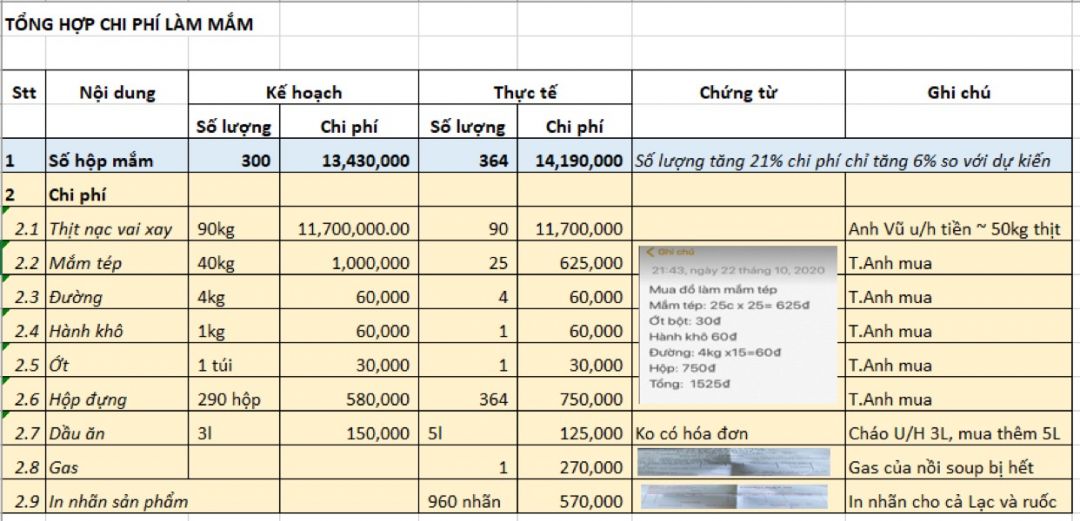 Còn đây là báo cáo chi phí thực tế phát sinh, mong tổ điều phối xem và phê duyệt thanh toán giúp nhóm nhé