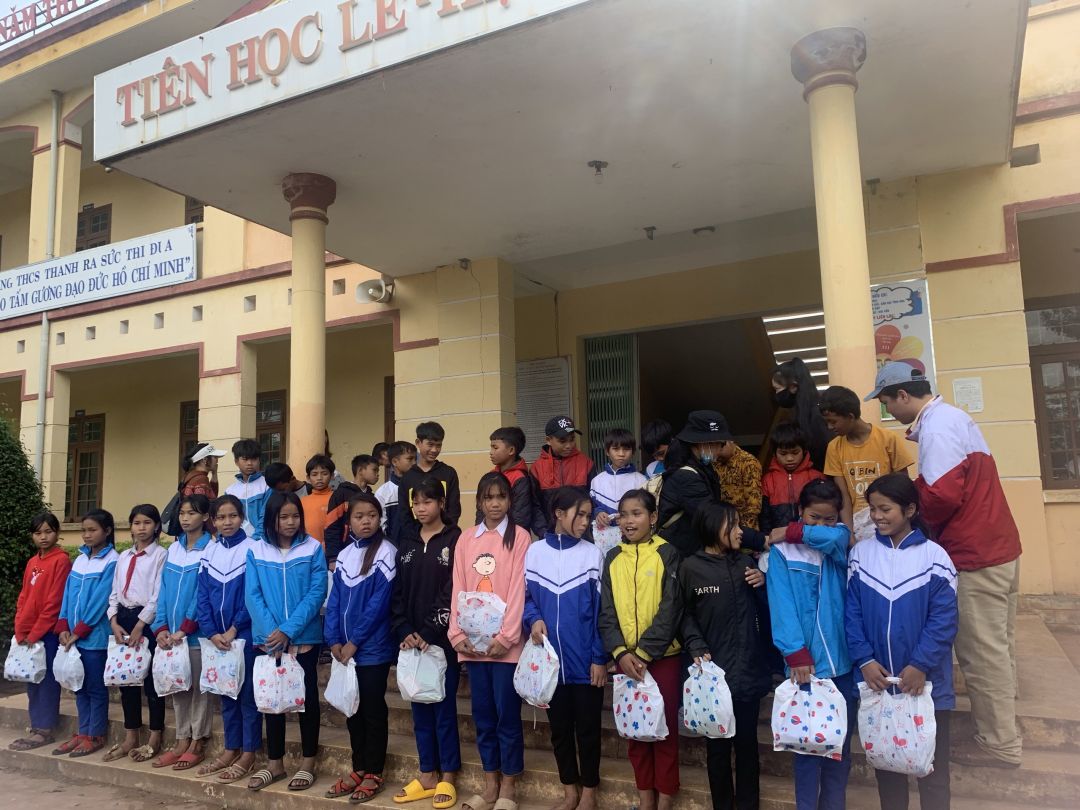Nhóm 4: Trao quà hỗ trợ bán trú cho 80 e HS tại điểm trường Thanh 4 củaTrường Tiểu học Thanh (gối, chăn, thảm, muỗng/thìa) và áo quần, chăn gối, ly uống nước, mũ dép cũ.