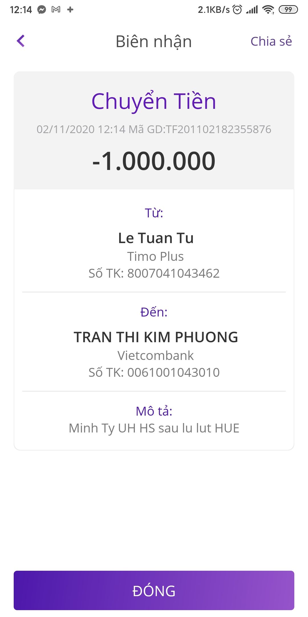0061001043010 _ Trần Thị Kim Phượng _ Ngân hàng Vietcombank .