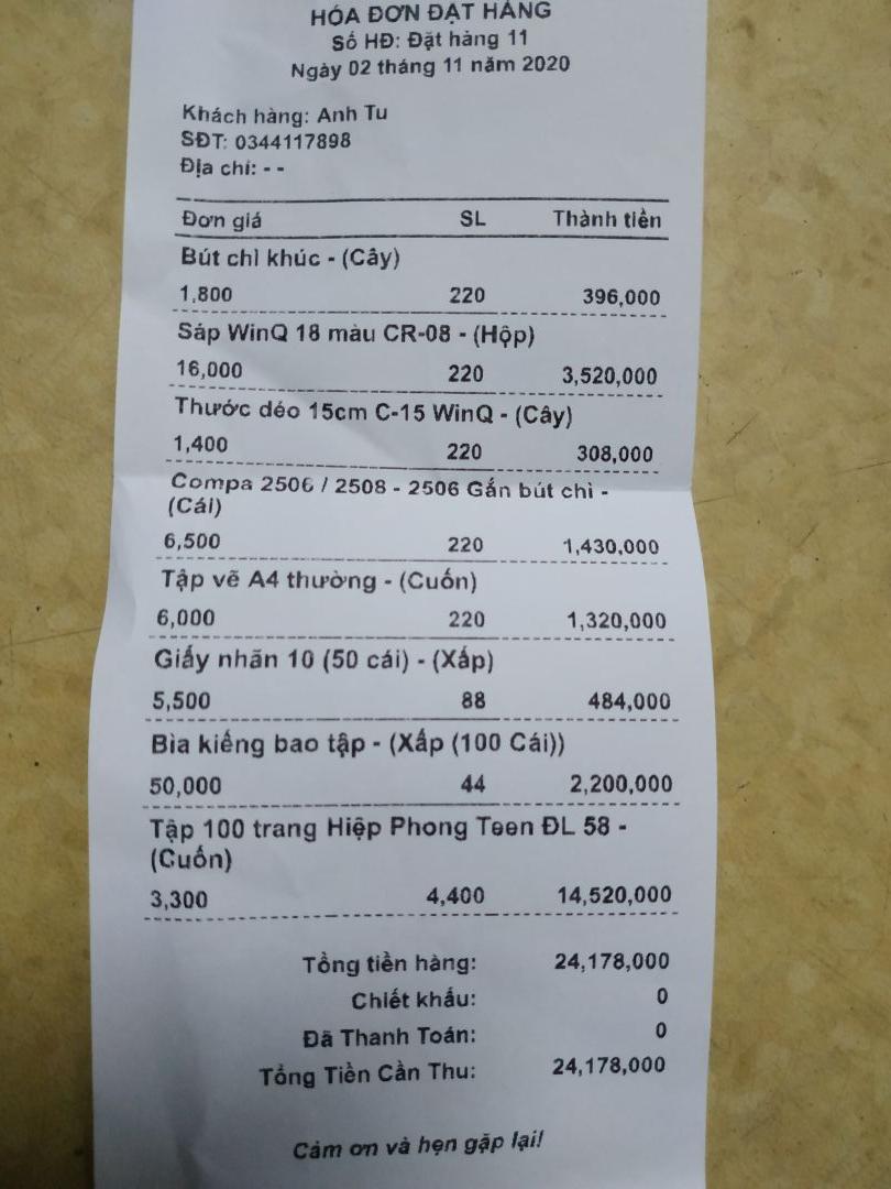 1). Vở: (170 suất x 10 quyển/1hs) = 1.700 quyển x 5.000đ/quyển _ 8.500.000Đ