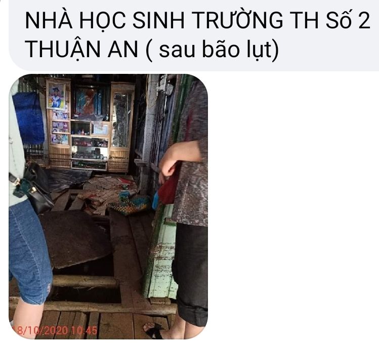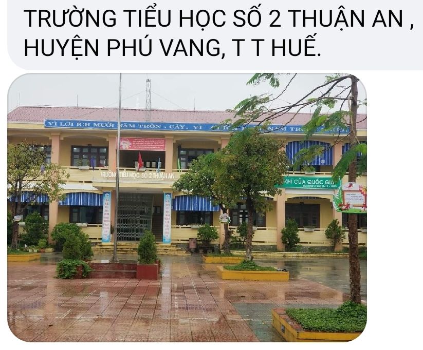 Trường TH Số 2 Thuận An tuy không ảnh hưởng nhiều về trường lớp, nhưng 1 số gia đình học sinh ở vùng ven biển lại bị ảnh hưởng trong các đợt bão lụt. Nên qua khảo sát và nắm tình hình chung ở trường, nhóm đề xuất tặng 57 suất quà đến 57 học sinh ở các khối lớp bị ảnh hưởng.