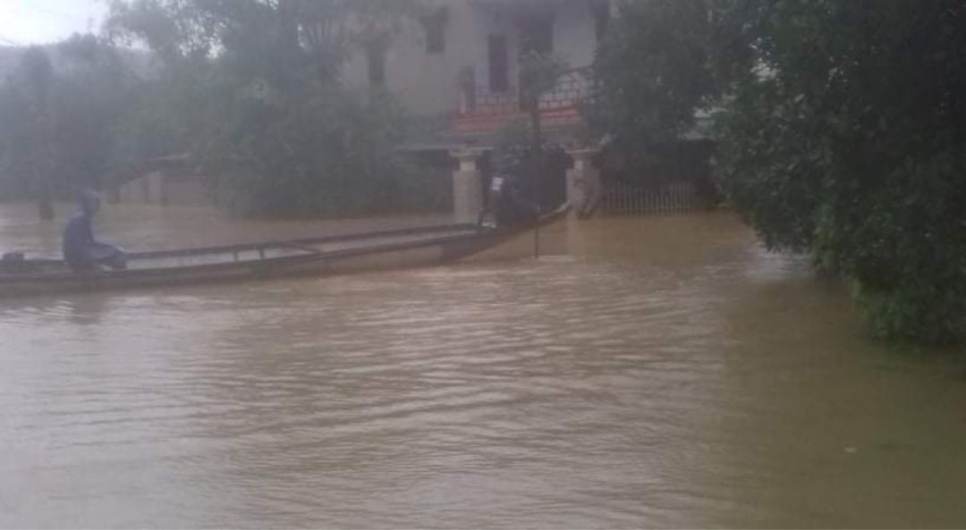 Hiện tại nước ở hai thôn Rào Trù và Lâm Ninh xã Trường Xuân nước mổi ngày càng cao có nhiều nhà gần đến mái