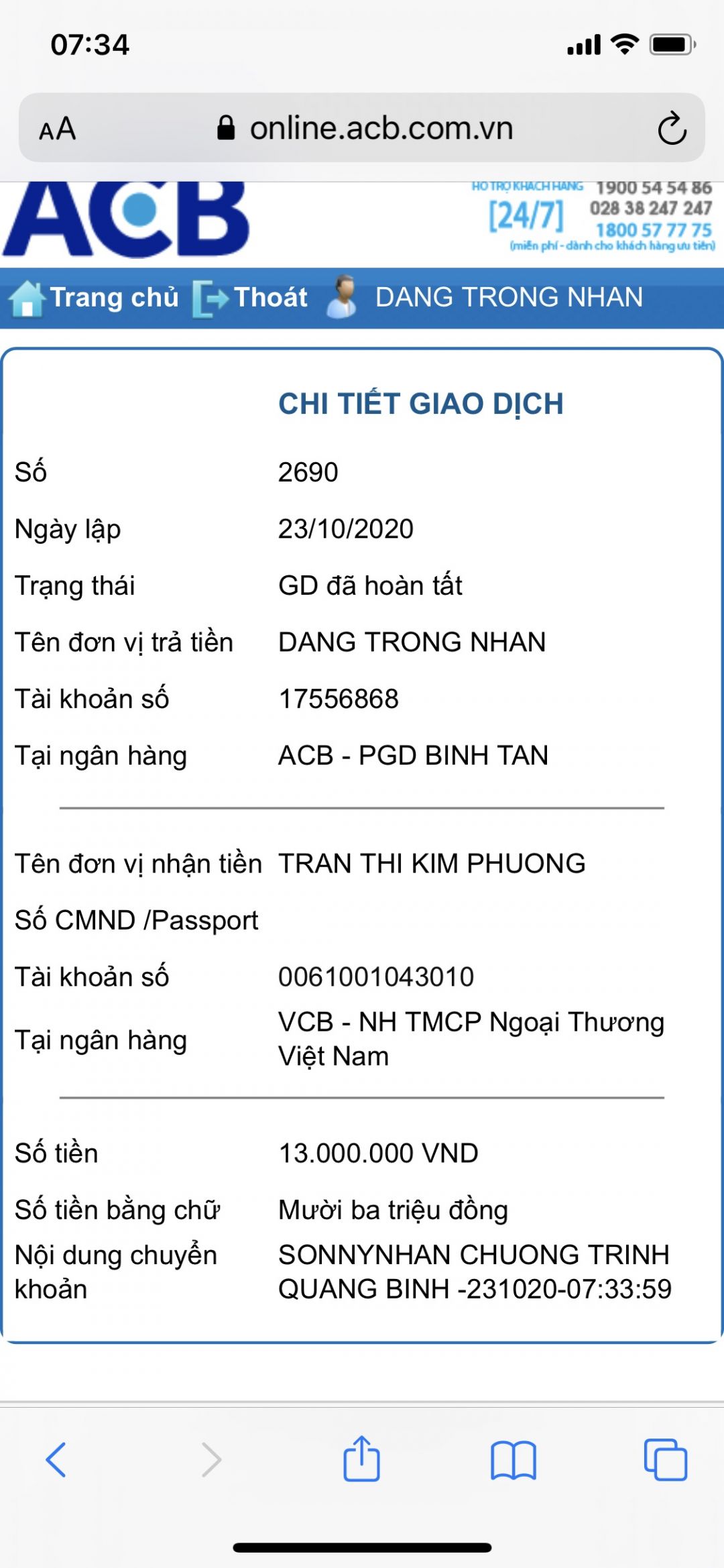 * Tiền Thủ Quỹ đã ứng anh Giang Sơn còn dư : 14,360,000đ - 13,080,0000đ = 1,280,000đ. Nhờ anh @Giang sơn chuyển lại cho Thủ Quỹ nhé.