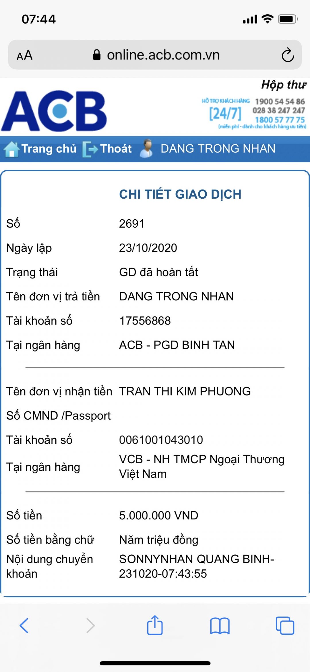 Mọi đóng góp xin gửi về tài khoản thủ quỹ: