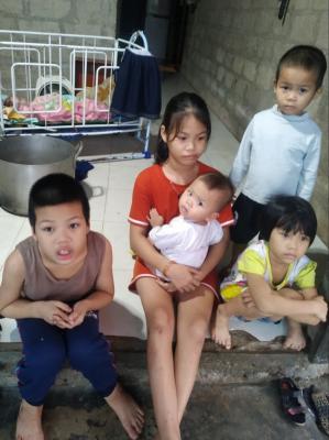 Gia đình em có tổng số 8 thành viên. Em Oanh là con gái lớn của gia đình đông con. Hoàn cảnh khó khăn nên có nguy cơ nghỉ học rất lớn.