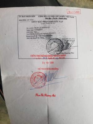 Em trai: Trần Lê Anh Kiệt _ Sn2010. Em Kiệt mắc bệnh Thần kinh dạng tâm thần dạng nặng. Không làm chủ được hành vi. Em được học ở Trường trẻ em Khuyết tật Long Thọ, Thủy Biều, có trợ cấp 540.000đ/tháng.