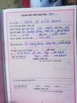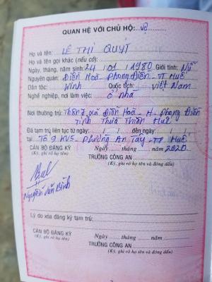 Địa chỉ nhà: Tổ 9, KV5 Phường An Tây, TP Huế.