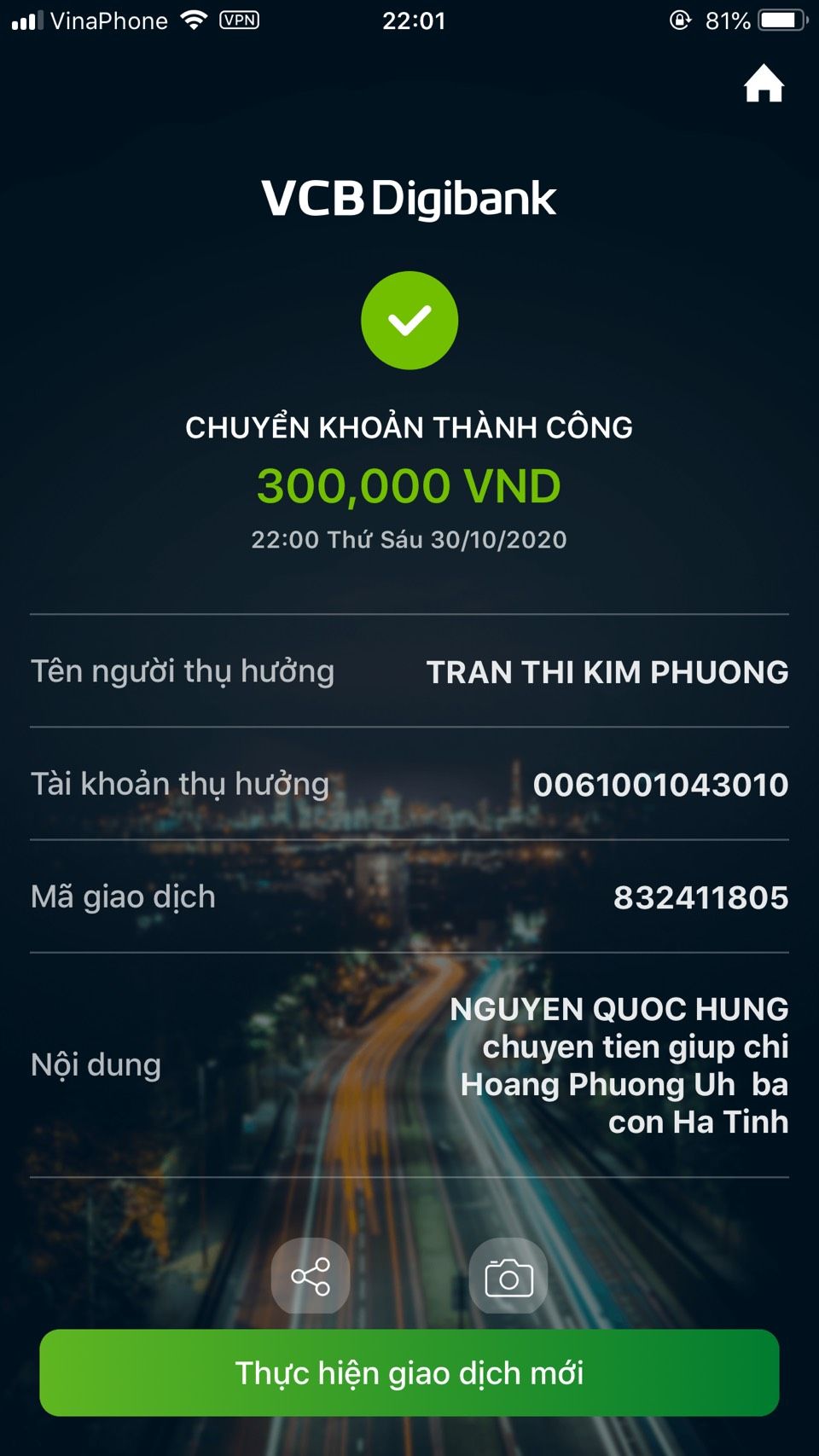 Cảm ơn sự chung tay của cả nhà dành cho Hà Tĩnh.
