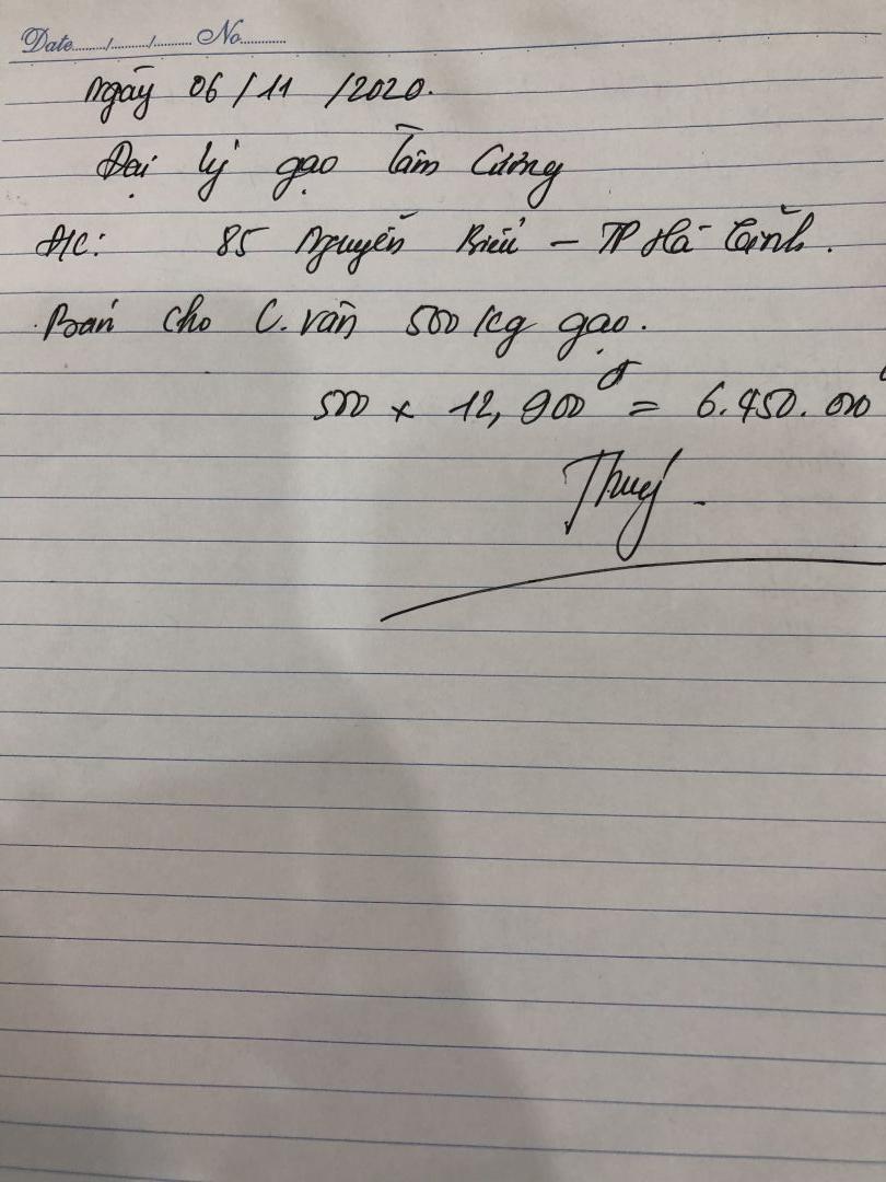 - vì gạo mua ở các điểm bán nhỏ lẻ nên không có hoá đơn bán hàng, mà họ chỉ viết giấy giao hàng cho nhóm.