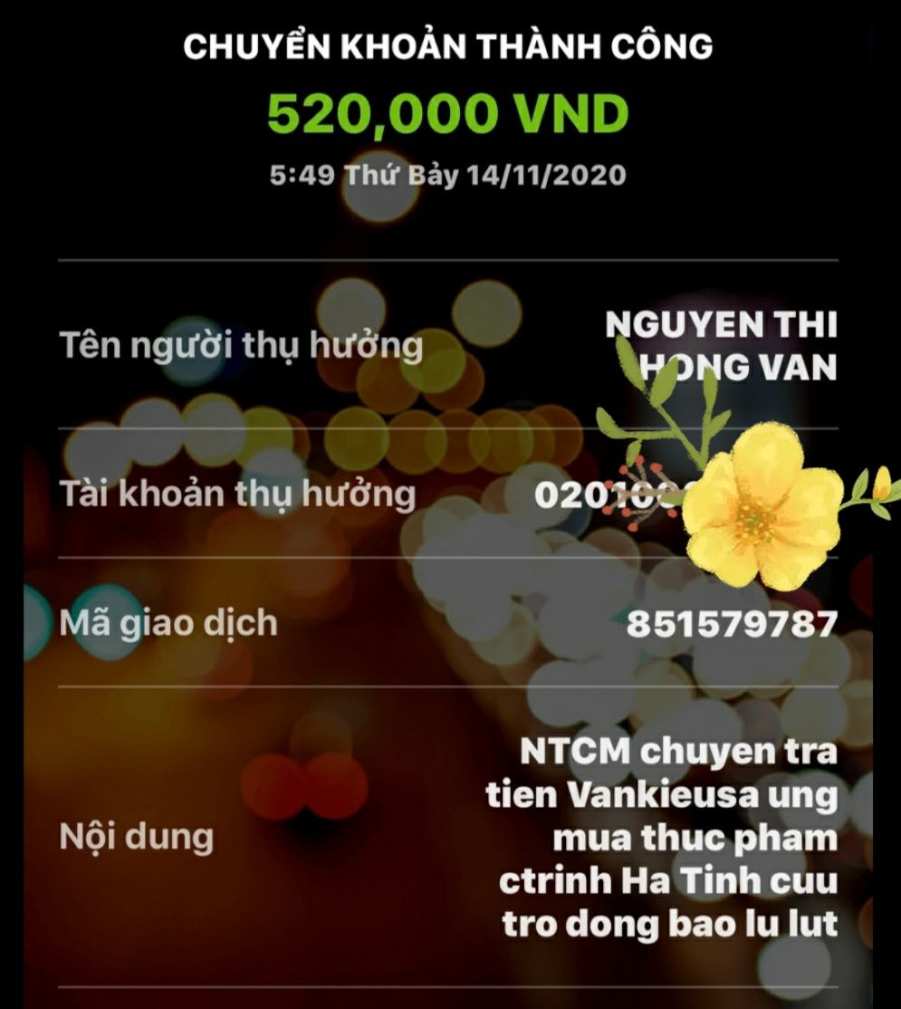 - Tổng số tiền ủng hộ Hà Tĩnh nhận được như Kiều Oanh đã báo cáo trước đó: 32,588,000