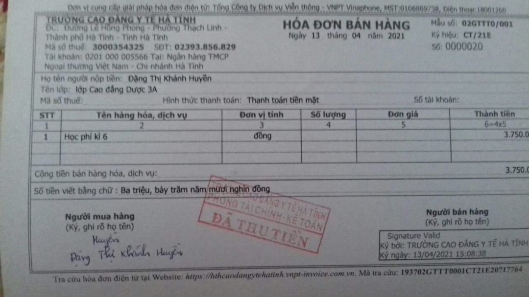 Được sự quan tâm của cả nhà và gđ Michele_du hỗ trợ cho em vay học phí kỳ 5, e xin cập nhật hoá đơn học phí kỳ 5 ạ