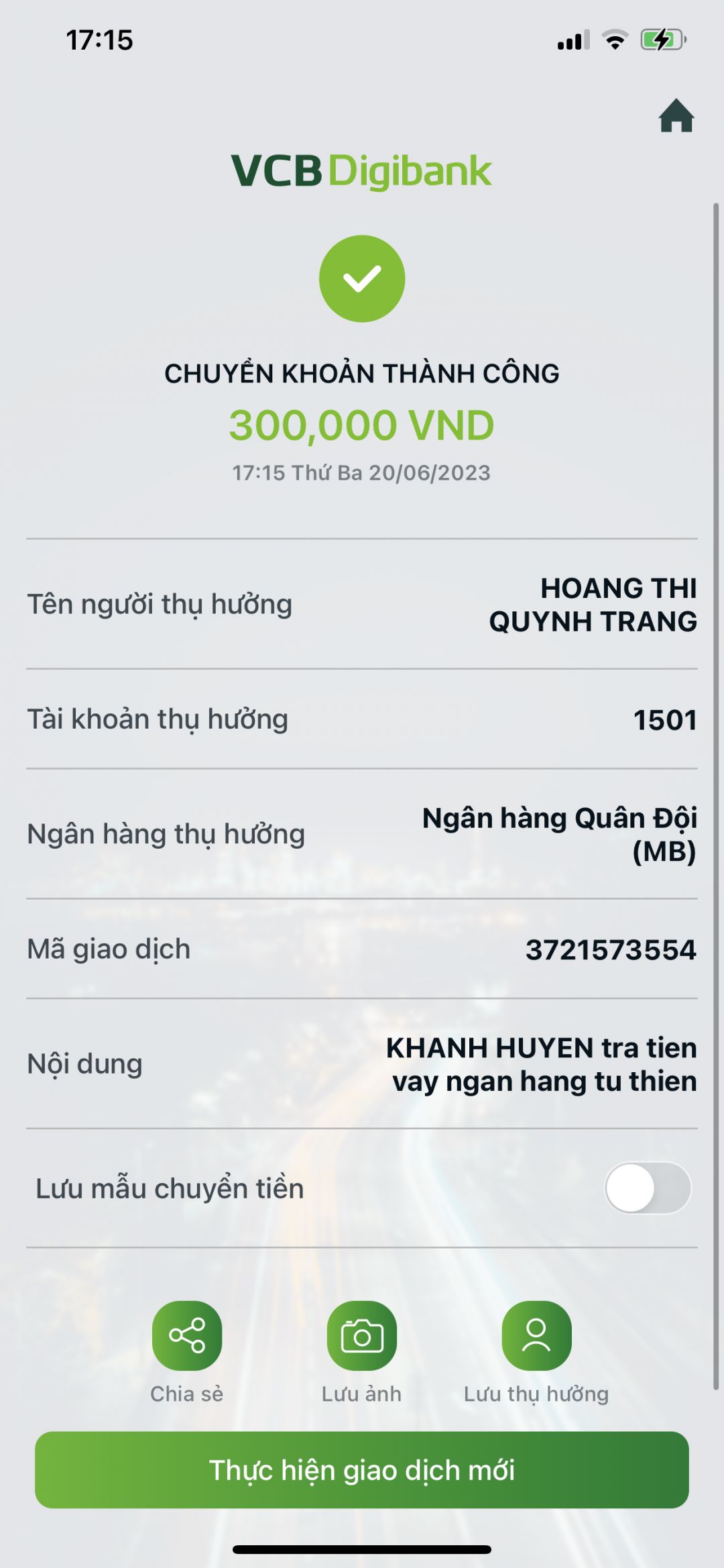 Em xin đóng tiền vay các MTQ tháng 6/2023 ạ