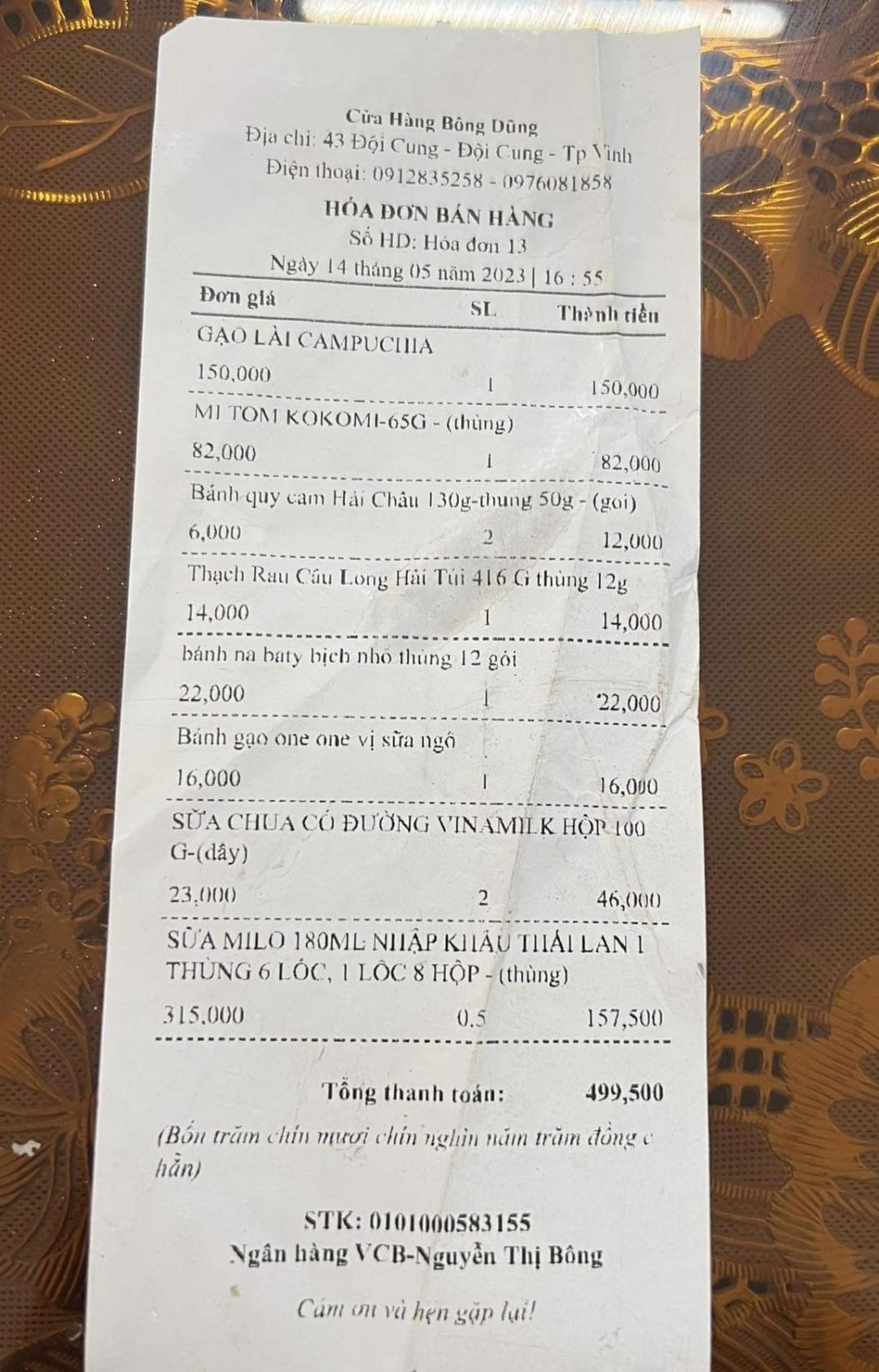 Violet vừa chuyển 1.5 triệu vào tài khoản của Hoàng Ngân. Đây là khoản tiền CMTX quý 2/2023 nhờ Ngân chuyển giúp đến gia đình cháu Danh.