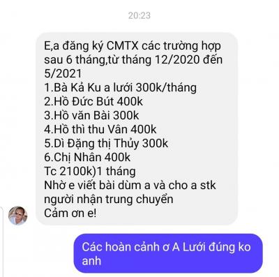 Anh 007 nhận hỗ trợ CMTX phần tiền đến gia đình em Vân từ tháng 12/2020 đến tháng 5/2021.
