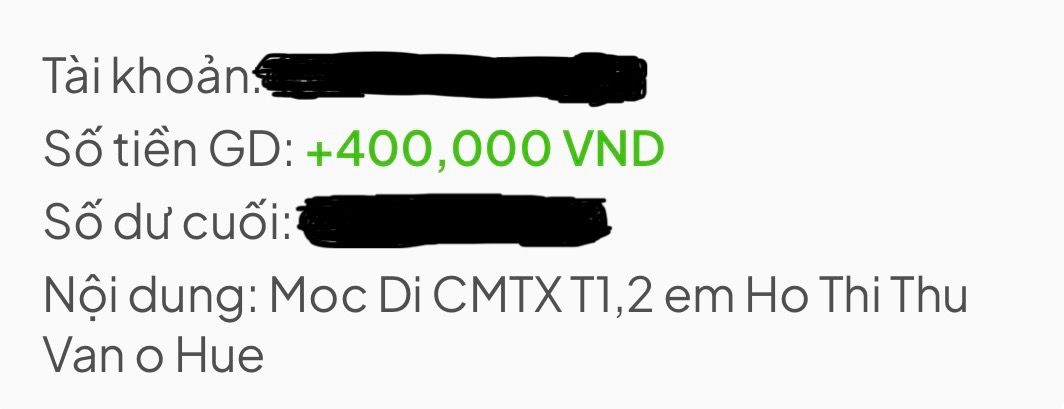 Con đã nhận được số tiền 200.000đ trong tháng 12 từ sự giúp đỡ của cô Mộc Di ạ. Con và gia đình con vô cùng biết ơn sự giúp đỡ của cô ạ.