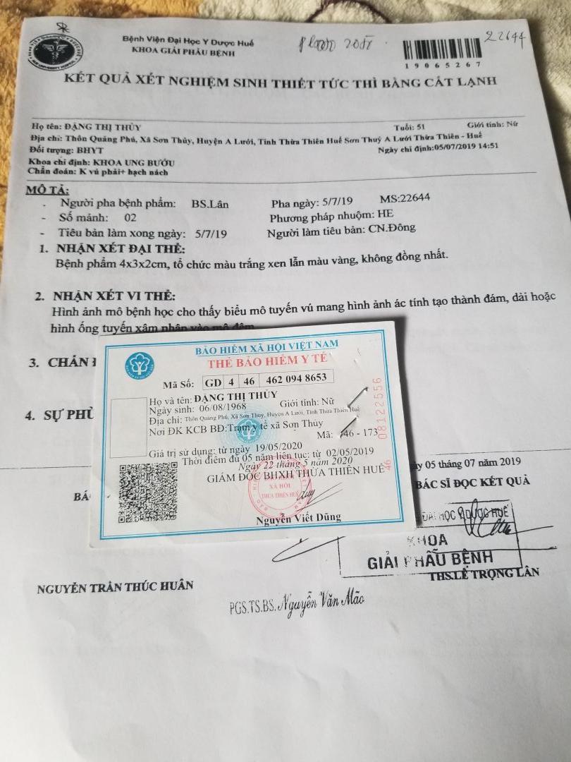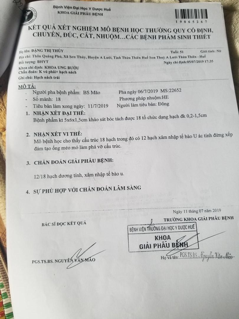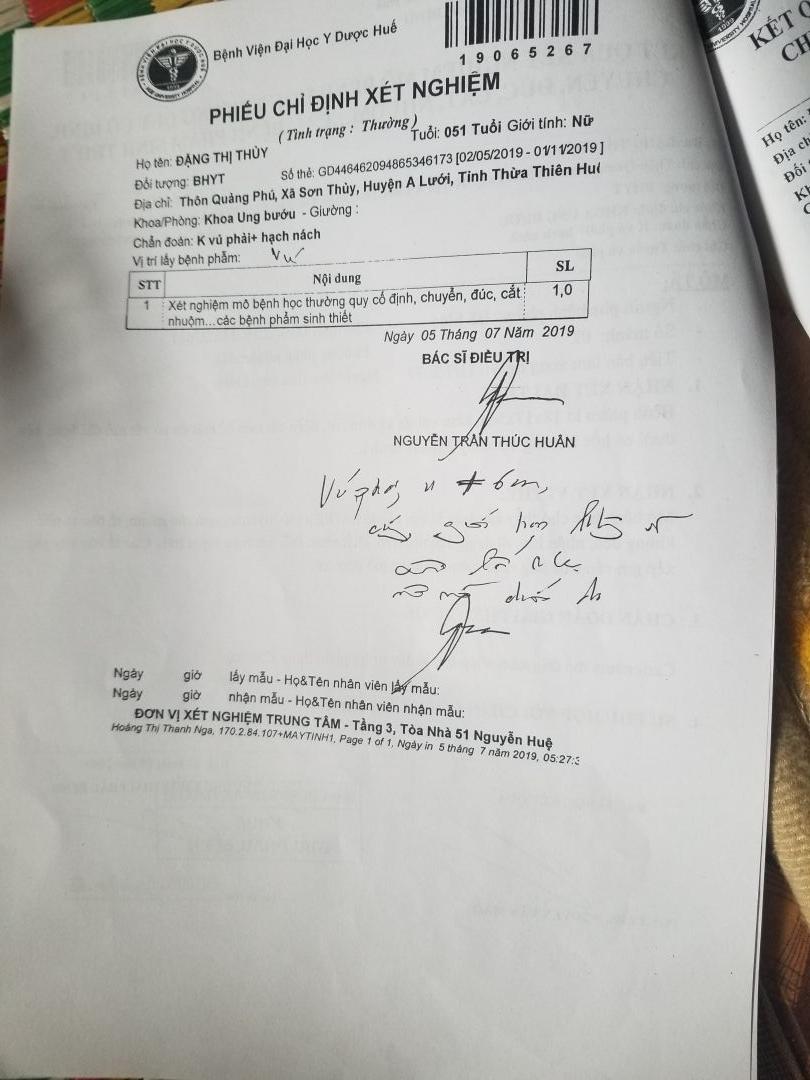Tác giả Chủ đề: Huế (A Lưới) - Dì Đặng Thị Thủy (Bé) - K vú cần giúp đỡ  (Đã xem 10006 lần)