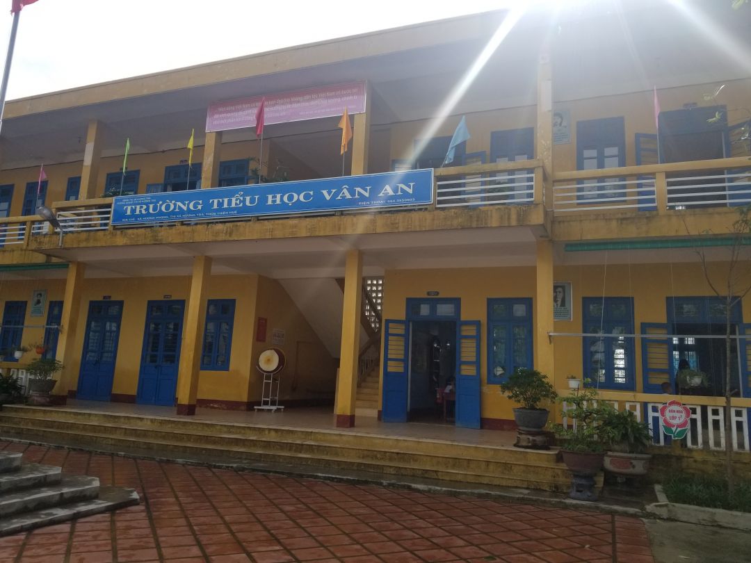 Trường Tiểu Vân An nằm trong khu vực thấp trũng, dễ ngập lụt và nhiễm mặn do gần khu biển. Toàn trường có tổng số 365 học sinh với 14 lớp. Với số lượng học sinh như vậy nhưng trường chỉ có 1 máy lọc nước nhỏ để sử dụng cho cả học sinh. Vậy nên, qua khảo sát nhóm đề xuất tặng thiết bị lọc nước đến trường Tiểu học Vân An. Nhằm giúp các em có thêm thiết bị nước uống sạch.