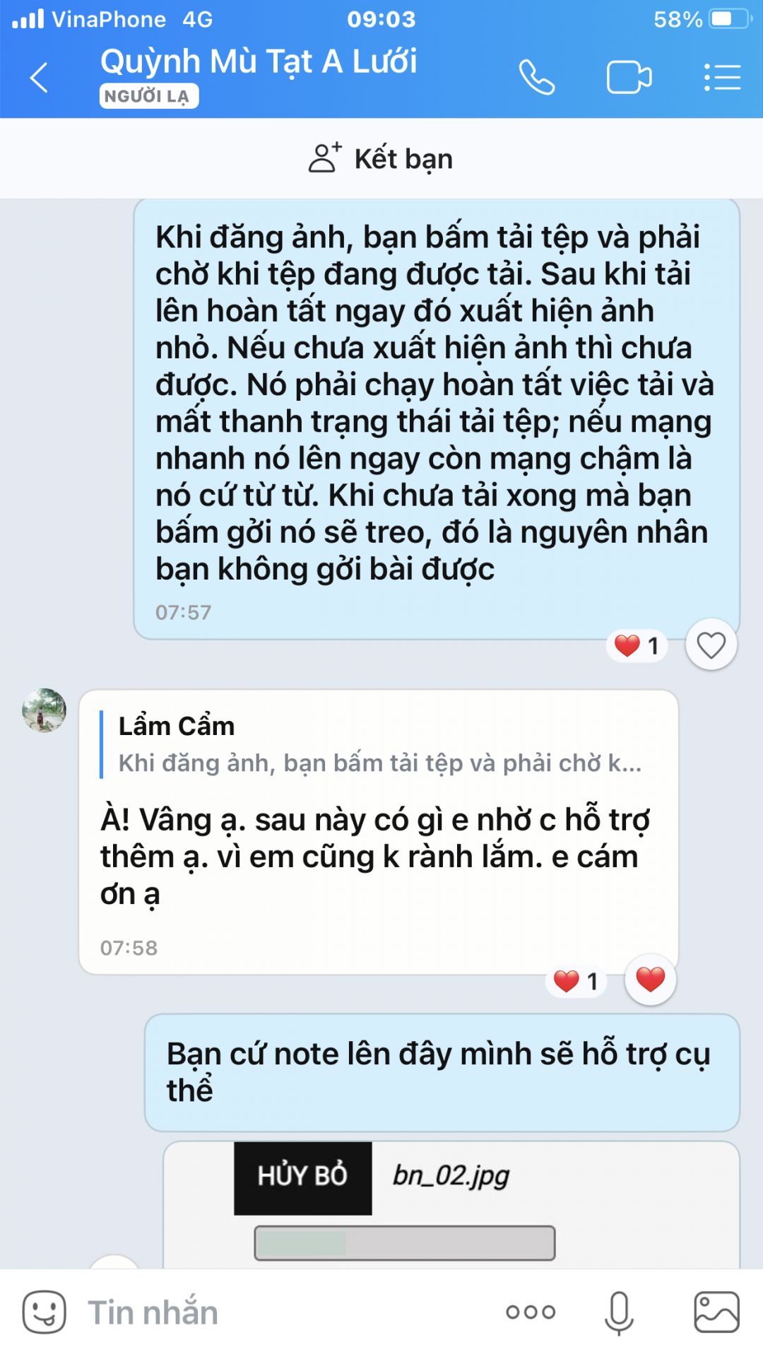 Ảnh - 2: Quy trình tải ảnh ở trang diễn đàn nhóm. Vấn đề này khi mạng yếu sẽ khó khăn, như A lưới hoặc vừa rồi Lý Sơn cũng bị chật vật; admin đã hỗ trợ mở cửa và dọn đường tối đa nhưng sóng yếu ảnh vẫn khó đi.