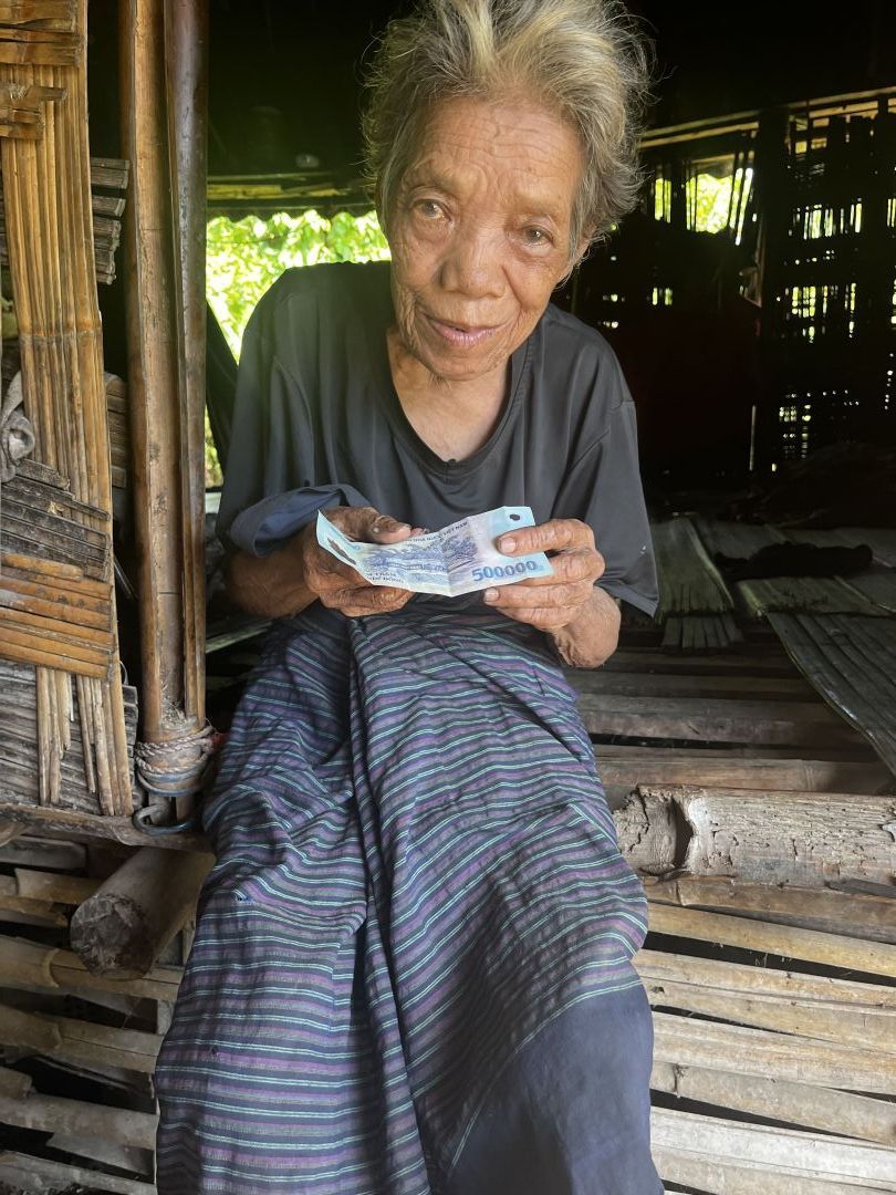 em trao quà tháng 10 cho cụ Cu Crung với số tiền là 500 nghìn đồng. thay mặt cụ em biết ơn chị Yến và quý MTQ nhiều ạ.