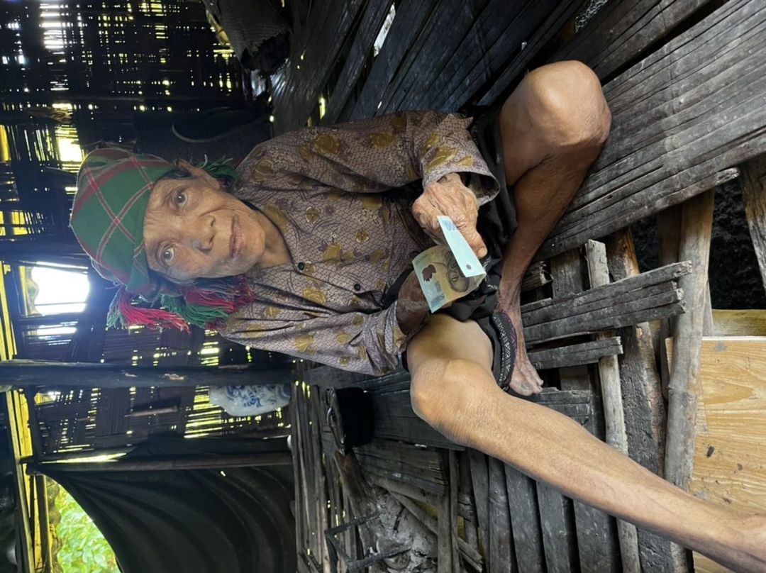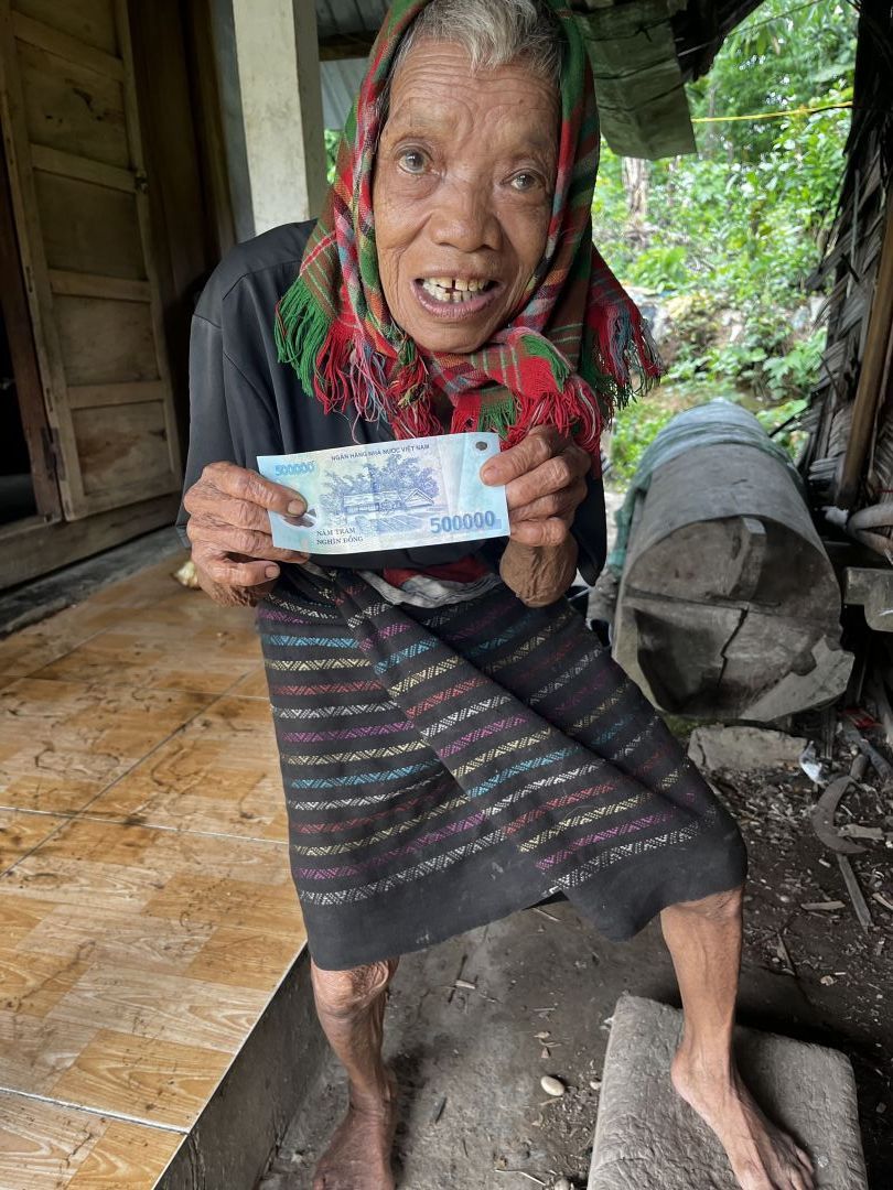Em trao quà tháng 5 cho cụ Cu Crung với số tiền là 500 nghìn đồng. Thay mặt cụ em biết ơn chị Yến và quý MTQ nhiều ạ.