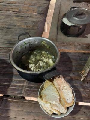 TV đến thăm bà đúng lúc bà đang lọ mọ nấu ăn, mở nồi xem có gì ngon không thì thấy có một nồi cơm trắng, và một nồi cà dừa nấu đậu phụ trắng, và một đĩa đậu phụ chiên. Nhìn bữa ăn đạm bạc nhưng đối với bà là bữa ăn rất ngon rồi. Có món chiên món canh, và cơm trắng. Cũng gọi là đủ chất, chay thanh đạm không thịt cá, chính có lẽ nhờ những bữa cơm thanh đạm vậy mà cụ vẫn mạnh giỏi đến độ tuổi này. Chứ như chúng ta ở thành phố ăn đầy đủ chất cá thịt, rau củ quả nhưng đâu phải nguyên liệu nào cũng sạch không có hoá chất đâu nên rất nhiều người đã ra đi từ khi còn rất trẻ do bệnh tật đau ốm. Kể ra thì những người nghèo họ thiệt thòi thật, khổ thật về vật chất kinh tế, nhưng chính cuộc sống đạm bạc thanh bần, ít hưởng thụ lại khiến các cụ sống rất thọ, toàn 80,90 tuổi không dù cuộc sống có khổ cực vất vả cả một đời. Thật cảm ơn những năm tháng còn lại của tuổi già các cụ được các mtq cưu mang, hàng tháng có gạo ăn, các cụ không con lo phải chắt chiu, bữa đói bữa no nữa. Tụi con đã mua gạo, nhu yếu phẩm gồm mì tôm dầu ăn, nước mắm, bột ngũ cốc dinh dưỡng v.v cho cụ. Con cập nhật hình ảnh trao cưu mang hc cụ Xuân tháng 4/2021 để cả nhà được biết. Nhìn nụ cười móm mém của cụ mà thấy ấm lòng lắm ạ. Cảm ơn cả nhà nhiều!