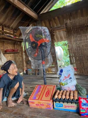 Chào cả nhà ạ!. Con xin cập nhật hình ảnh trao cưu mang thường xuyên tháng 5/2021 cho cụ Xuân. Do thời tiết ở Nghệ An nóng quá, nên tụi con có xin một chị trong nhóm bà thêm chiếc quạt, có chiếc quạt mới mà bà cười vui như một đứa trẻ. Nhìn thấy bà vui tụi con cũng vui lắm ạ, tháng này tụi con đã mua gạo, sữa, trứng, bầu, bột giặt cho bà. Con gửi kèm hoá đơn cũng hình ảnh trao cưu mang cho bà. Cảm ơn cả nhà đã quan tâm ạ!