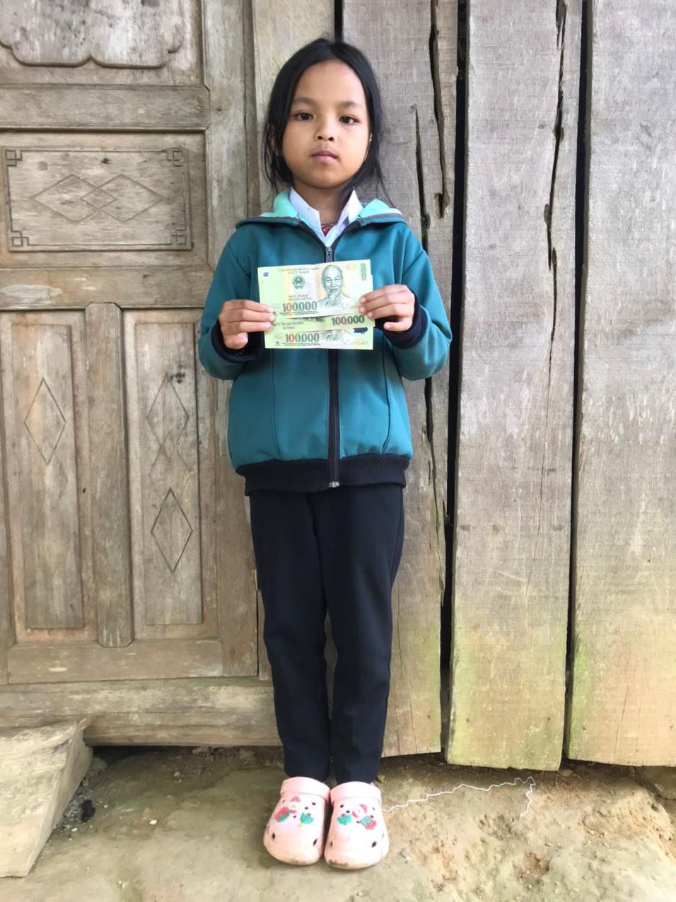 Cháu Ly học lớp 7, cháu học nội trú có học bổng đủ tiền ăn thỉnh thoảng đóng vài trăm ngàn tiền trường.