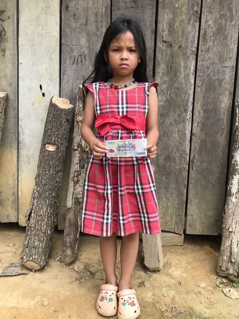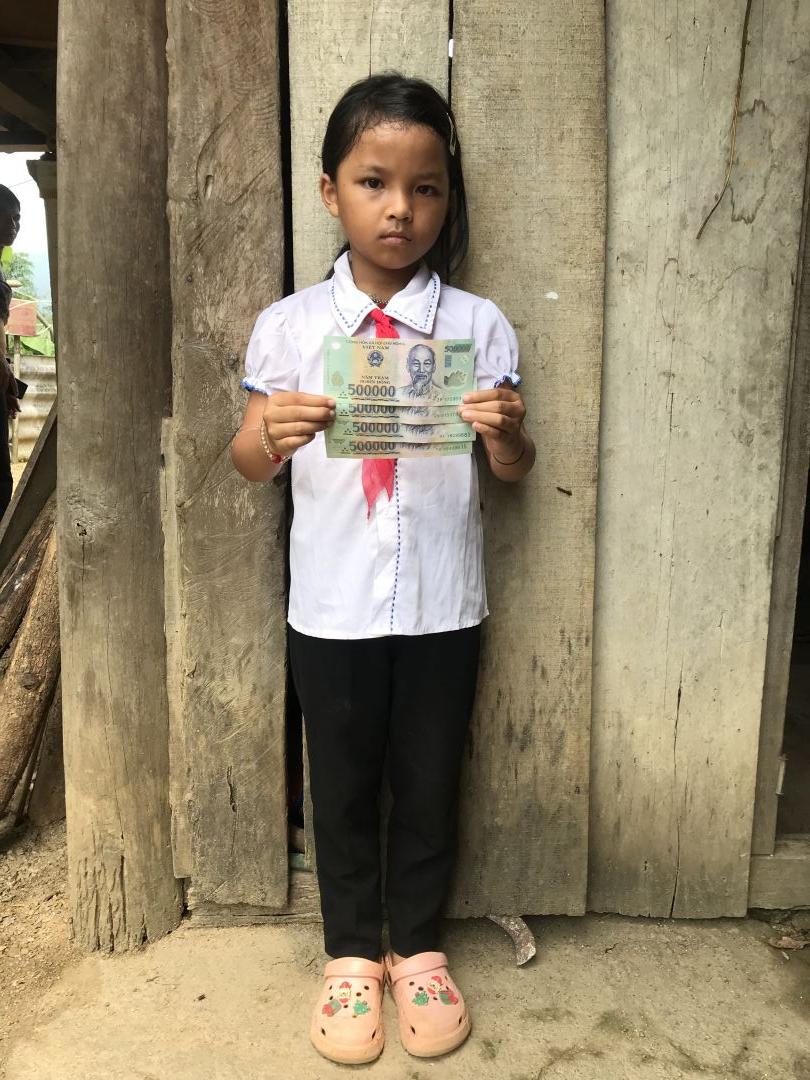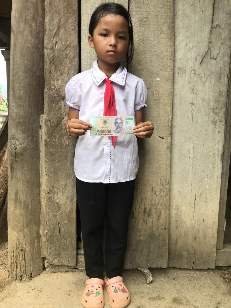 Cháu Ly học lớp 7, cháu học nội trú có học bổng đủ tiền ăn thỉnh thoảng đóng vài trăm ngàn tiền trường.