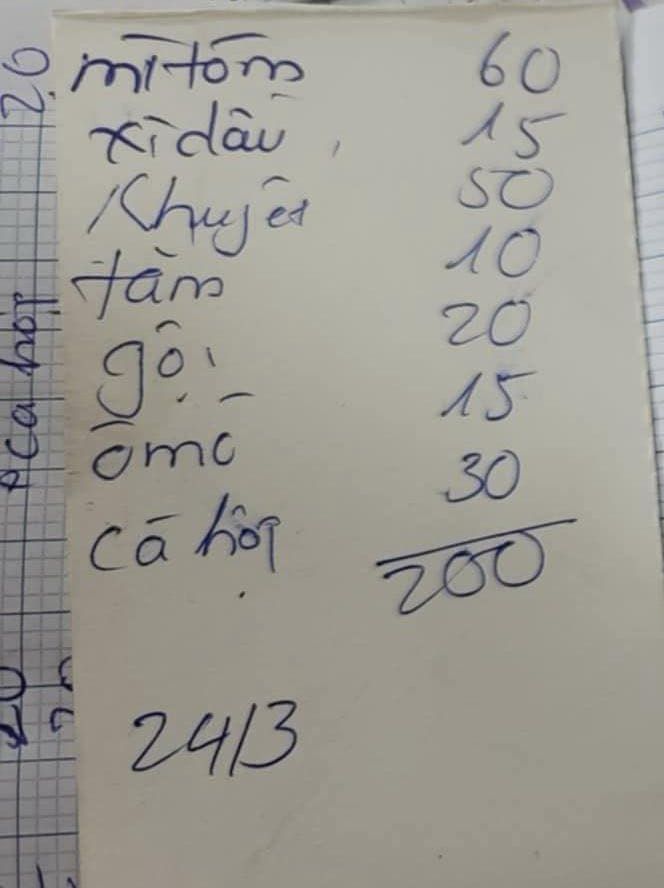 cho bà Kan Hắc ạ!300.000 đ nyp và 200.000 đ tiền mặt